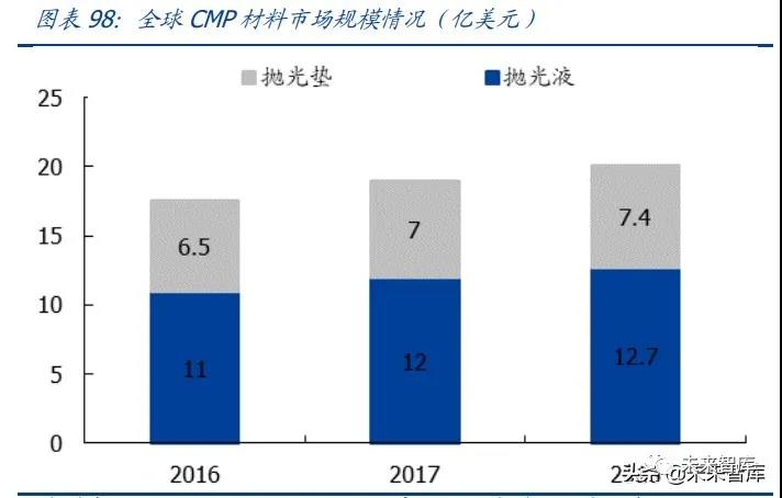 至 2018 年市場拋光液和拋光墊市場分別達(dá)到了 12.7 和 7.4 億美元,其中中國市場的需 求量大約為全球市場容量的 16.7%,即對應(yīng)市場規(guī)模為:拋光液+拋光液=23 億人民幣。
